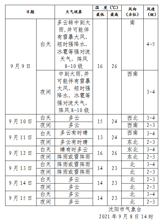 康平、法庫大雨,平均降水量30~50毫米,局部可能 達到或超過70毫米。